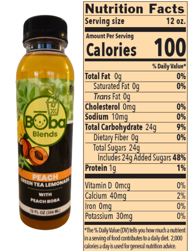 - Water | Sugar | Lemon | Peach | Peach Boba